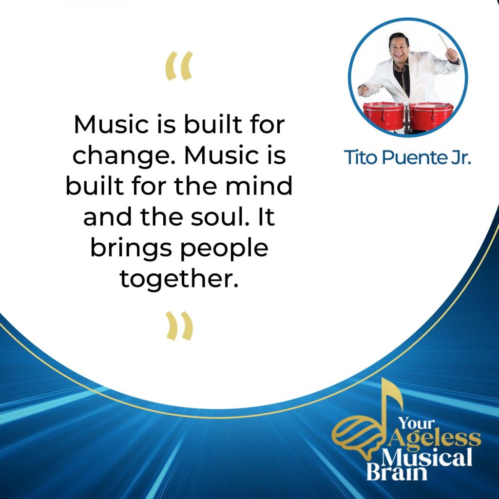 Probably because I think music keeps us young also. I saw an interview with a famous percussionist from Puerto Rico, Willie Rosario, who is about to turn 100 years old. He’s still touring and he’s still actually playing music. It’s a blessing that the music inspires him to get up in the morning and keep doing it. It activates all his system, his brain, “All right, let’s go.” It’s beautiful because it’s like a miracle that people in the 80s, 90s, and 100s, when they hear the rhythm, they want to get up and dance. It’s a beautiful thing.